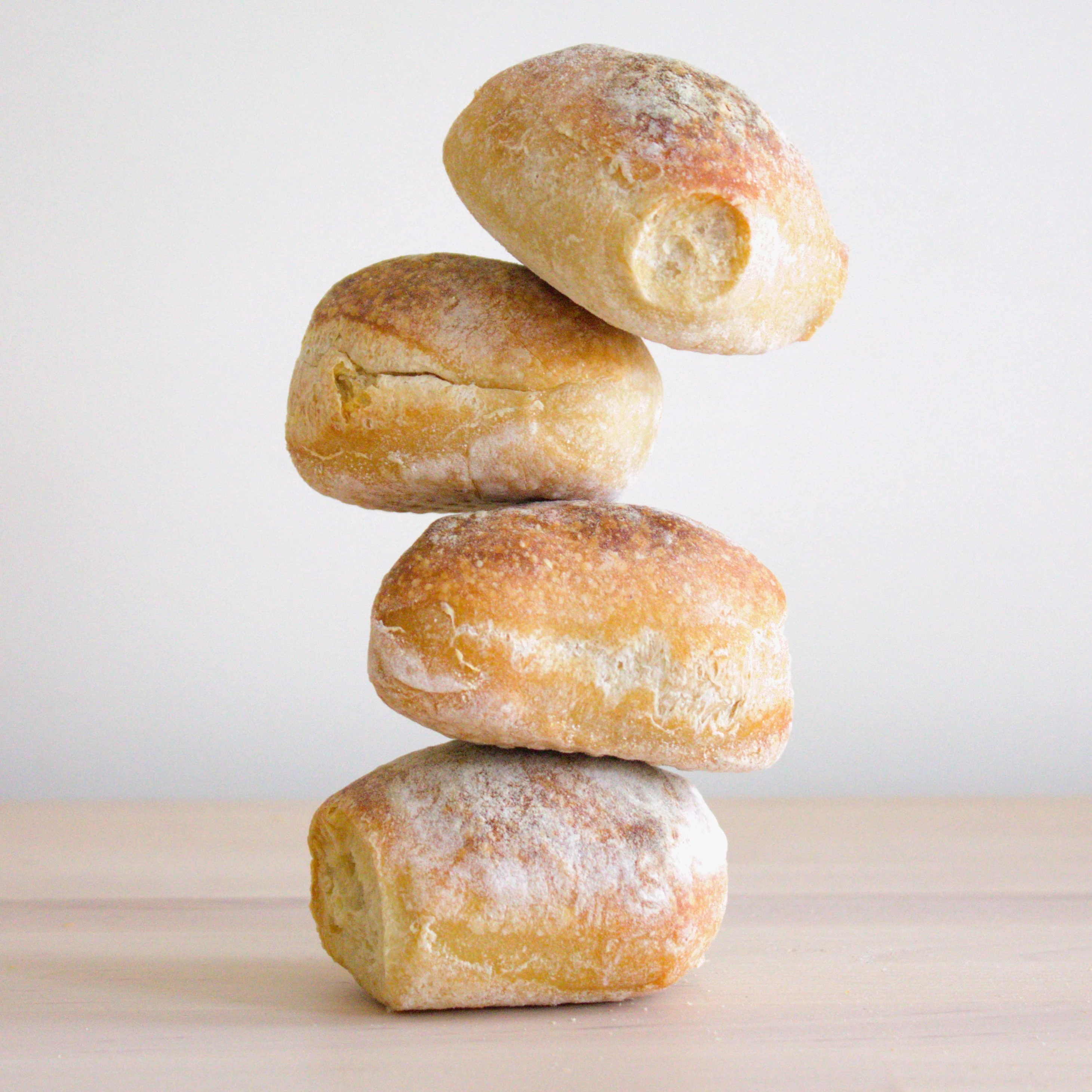 Our crusty & chewy sourdough rolls are made using our own sourdough starter. They are great as dinner rolls or simply warm with salted butter. Rich in nutrients, fibers, proteins, probiotics, and vitamins. They have a slight sour taste, with a beautifully light open crumb.